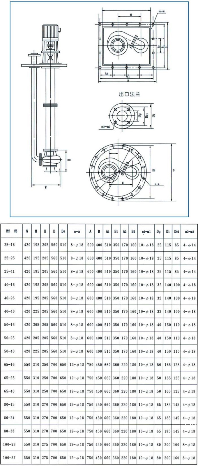 model | Outlet diameter (mm) | flow Q | lift (m) | speed (r/min) | power(KW) | ||